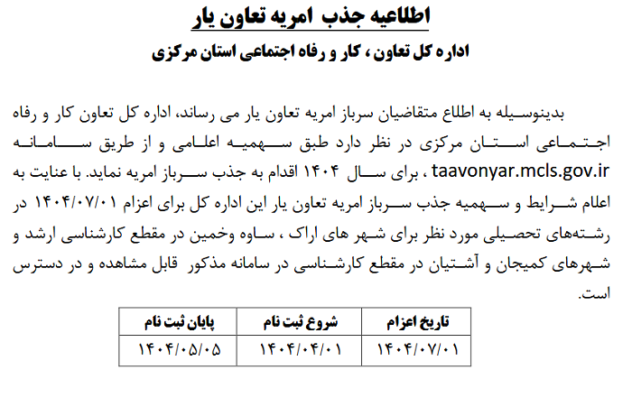 اطلاعیه جذب امریه تعاون یار ۱۱ تیر ۱۴۰۴ | ۱۲:۰۴ کد : ۵۲۷۴۸ اطلاعیه ارسال به دیگران نام شما ایمیل شما ایمیل دریافتکننده ارسال انصراف تعداد بازدید:۱۳۴۴ اطلاعیه جذب امریه تعاون یار